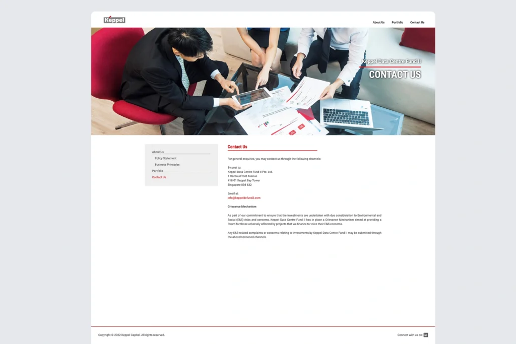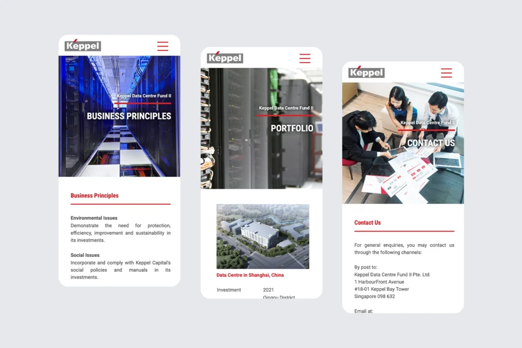 We designed and developed a corporate-grade website for Keppel DC Fund II, with a layout that presents their data‑centre assets, services, investor information, and company profile in a clear and professional manner. The design ensures seamless accessibility and readability across devices, offering a consistent user experience on both desktop and mobile.