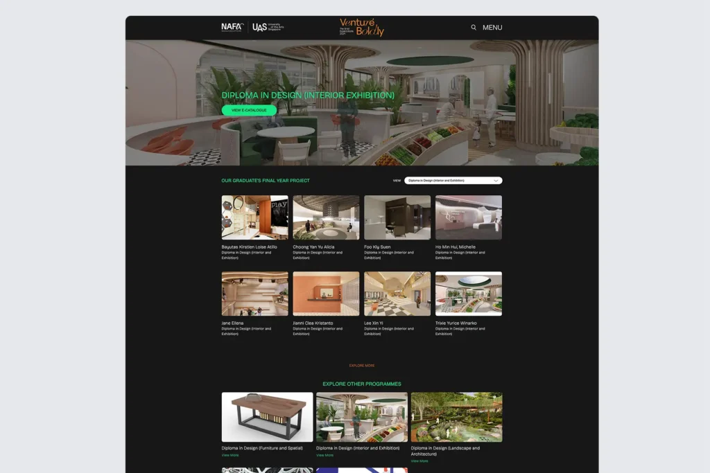 The Grad Expectations Class of 2024 website was developed to extend the design based on the theme provided, creating a cohesive and engaging digital experience. Intuitive navigation, visually appealing layouts, and interactive elements guide visitors through student works and key content.