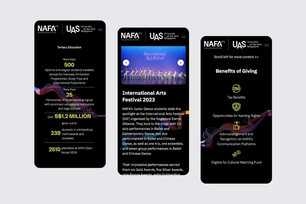 We developed the NAFA Year in Review 2023/2024 website, a digital showcase celebrating the achievements, milestones, and creative works of NAFA students and faculty over the year.