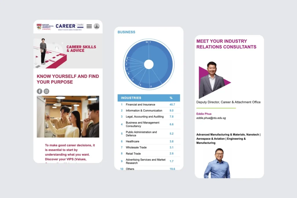 The NTU Career Tracks 2026 website provides easy access to program information, guidance materials, and interactive features that help students plan and navigate their career journeys. With a clean and user-friendly design, it ensures that NTU students can engage with content effectively, empowering them to make informed career decisions.