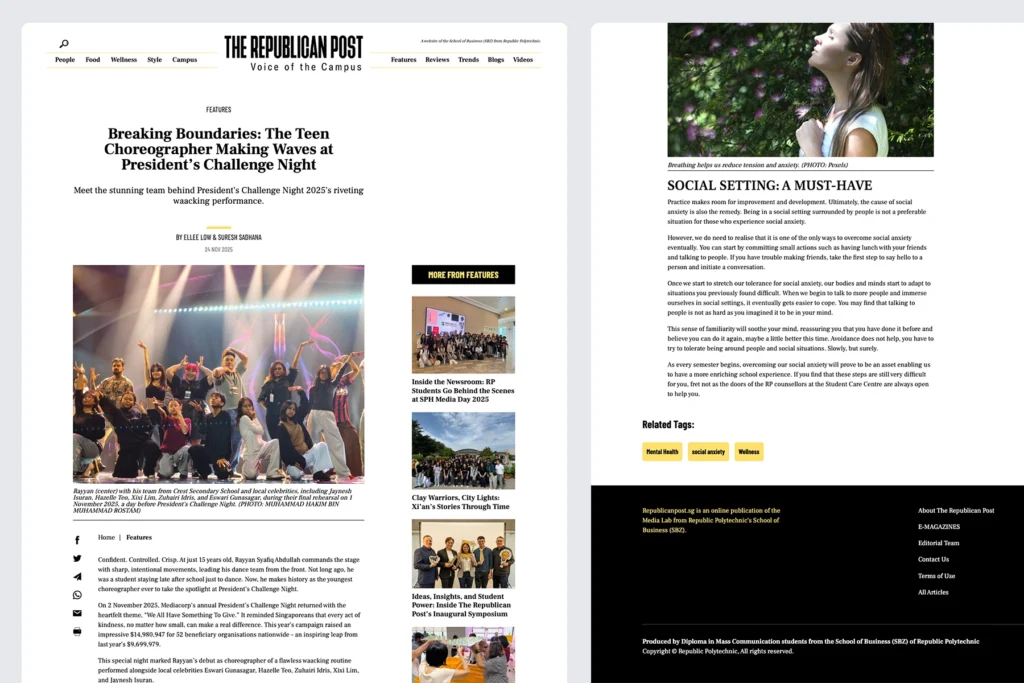 The Republican Post is a student-led digital newsroom at Republic Polytechnic, delivering timely and engaging stories across campus life, culture, and lifestyle. With intuitive navigation, responsive design, and multimedia content, the platform ensures readers enjoy a seamless experience while exploring diverse perspectives and fresh voices.